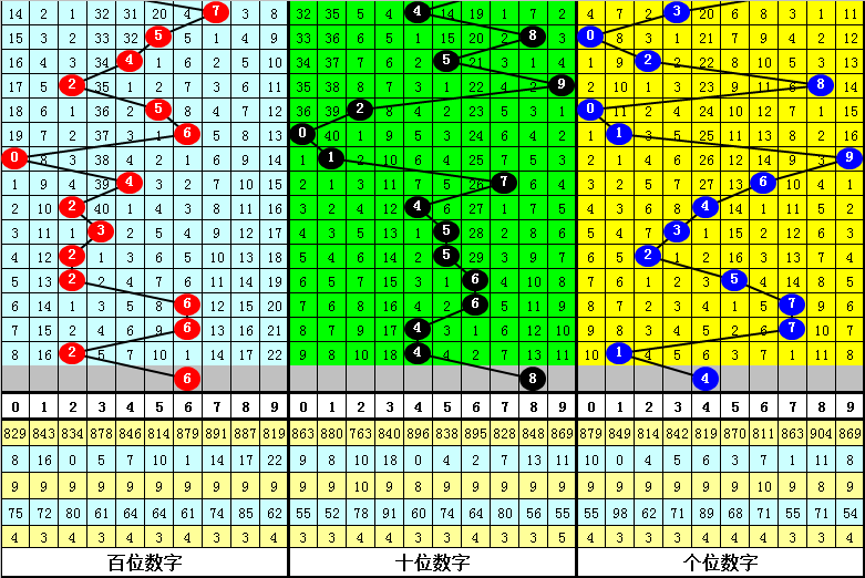 第三位上期开出奖号1,走小6点,本期注意该位走大,关注号码4。