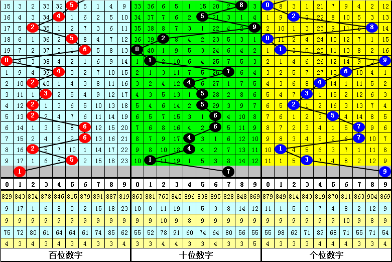 组选分析:在0-9的组选分布图中,最近10期0-2区段开出9个号码,3-6区段开出17个号码,7-9区段开出4个号码,上期7-9区间没有落号,本期预计号码主要在两端热出,防3-6区段走冷。