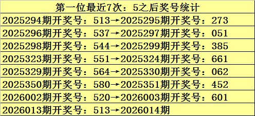 开奖回顾:第2026013期福彩3D奖号为513,和值9,跨度4,形态:奇奇奇、大小小。