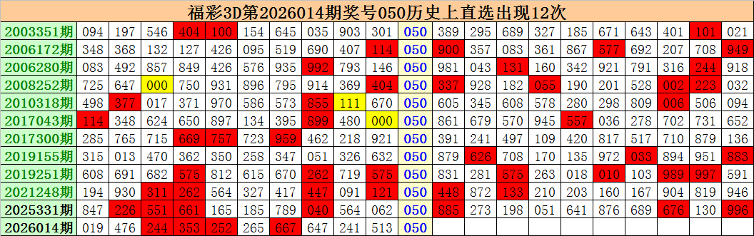 直选号码050历史上开出了12次,其下期分别开出奖号:389、900、981、337、605、861、391、879、831、448、885。