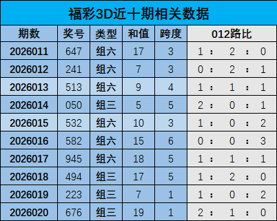 开奖回顾:福彩3D上期奖号为676,和值是19,跨度是1,其中奖号012路比为2:1:0。