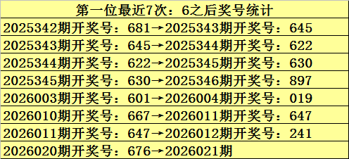 第一位冷码判断:上期奖号为6,遗漏值为8期,目前该位最冷号码为8,遗漏值为25期,本期不会解冻。