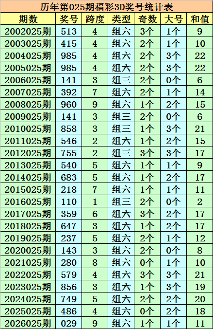 开奖回顾:福彩3D第2026025期奖号:029。