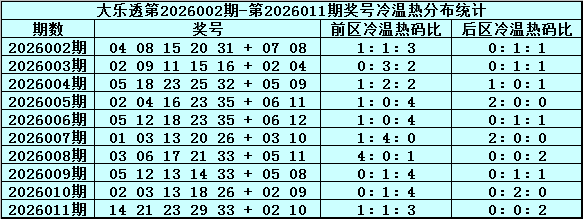 周横体彩大乐透第2026012期定位奖号遗漏值分析(定义:遗漏0-3期为热码,遗漏4-9期为温码,遗漏10期及以上为冷码)