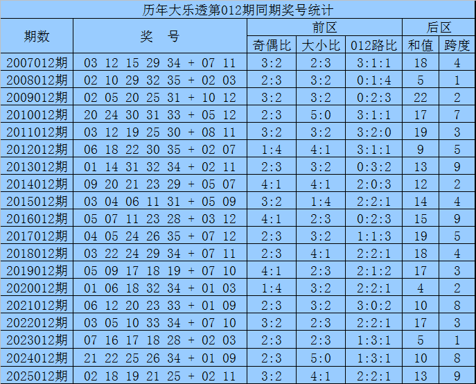 袁军师体彩大乐透第2026012期历史同期奖号分析: