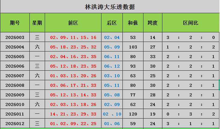 大乐透上期开奖号码:前区01、02、09、22、25,后区01、06,前区号码和值59,跨度24,区间比为3:1:1。