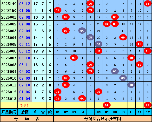 后区分析:上期后区为一奇一偶号码01+04,最近10期后区号码奇偶比为10:10,最近50期后区奇偶比为51:49,本期后区参考一奇一偶组合,关注两码07、12。