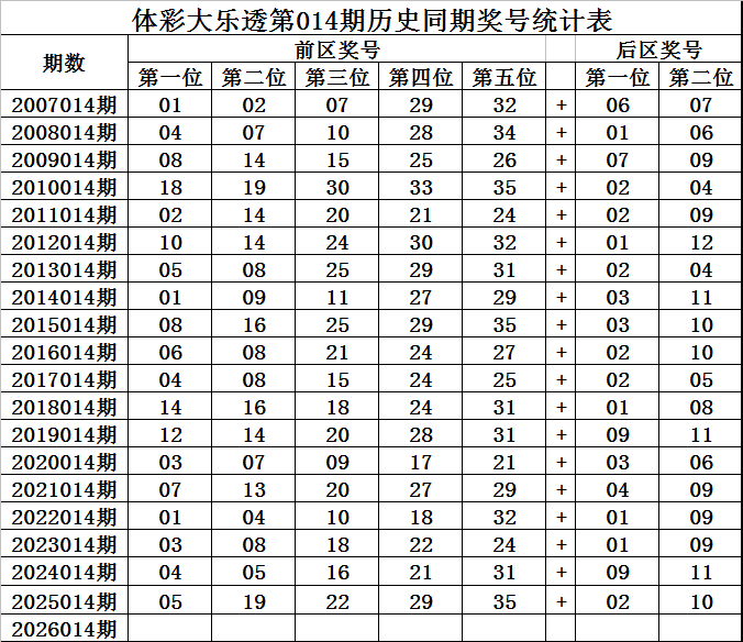 王守礼体彩大乐透第2026014期历史同期定位升重降号码分析: