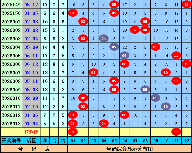 后区5码参考:01 03 04 07 11