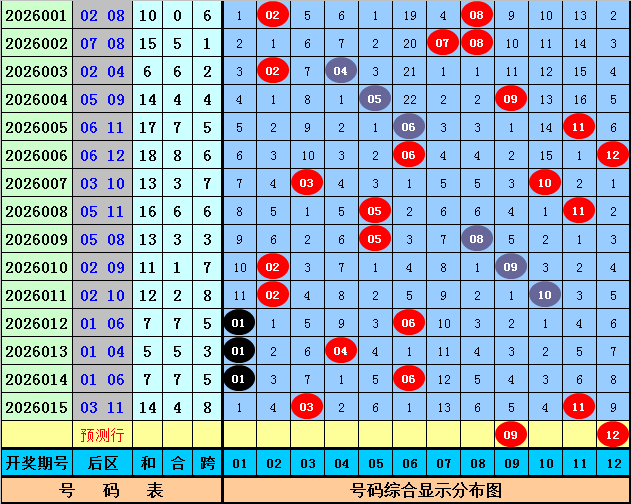 后区分析:在第016期历史同期开奖中,和值大小为13:6,跨度奇偶比为11:8,本期后区注意两码09和12。