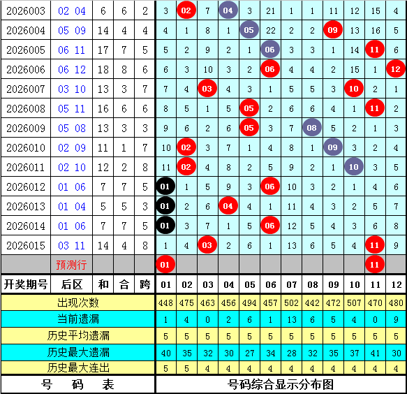 和值跨度:上期和值开出45,对比第2026014期和值下降了81个点位,本期看好和值走小,关注小 号区域和值,预计在84附近。