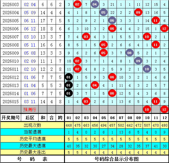 在历史同期开奖中,后区号码和值奇偶为11:8,其中偶号和值开出比例较低,本期注意偶号和值逐渐回补,关注和值22。
