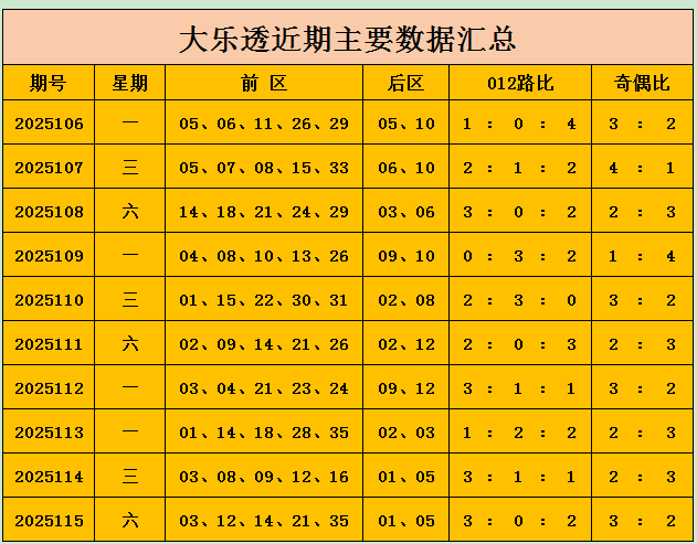 前区奇偶分析:上期前区开出奇数3个,偶数2个,奇偶比3:2,近10期奇偶比25:25,整体看奇偶数球出现均等,本期预计奇数球热出,推荐奇偶比3:2。