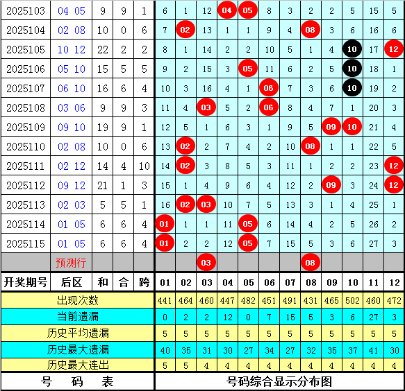 后区分析:在第116期历史同期开奖中,后区奖号全奇组合开出7次,全偶组合开出3次,一奇一偶组合开出7次,本期后区预计出现一奇一偶组合,看好号码03、07、08、10。