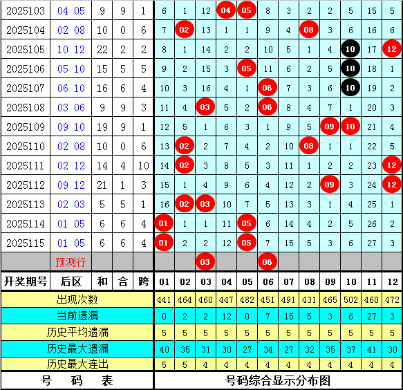 和值跨度:上期和值开出85,对比第2025114期和值上升了37个点位,本期看好和值走小,关注小 号区域和值,预计在84附近。