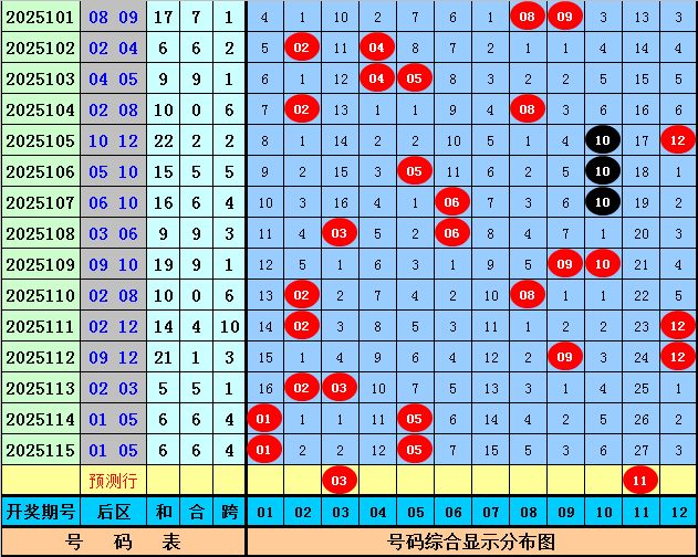 马哥第2025116期大乐透后区五码参考:01 03 08 10 11