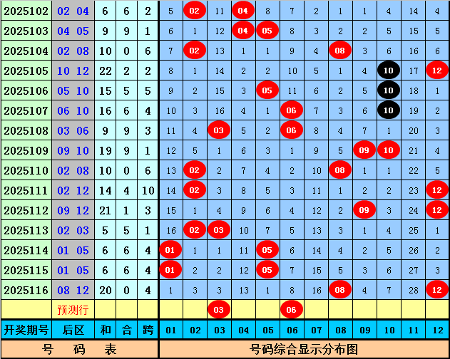 后区第二位分析:上期该位开出号码12,该位0号码遗漏2期再出,第二位最近30期012路比为11:11:8,最近20期012路比为9:6:5,最近10期012路比为5:2:3,本期第二位参考0路号,注意号码06。