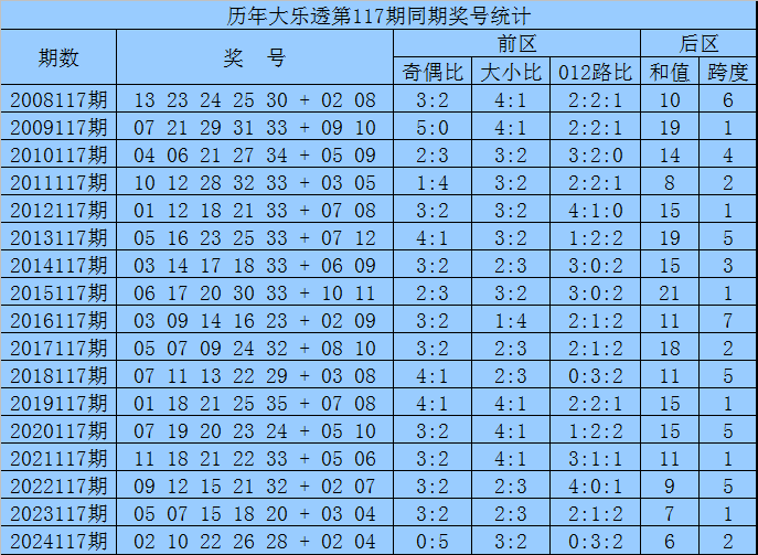 袁军师体彩大乐透第2025117期历史同期奖号分析: