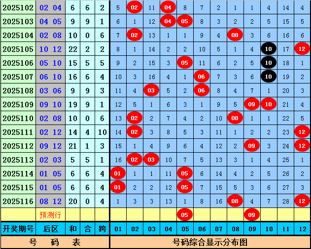 其中后区奖号奇偶比为14:26,大小比为19:21,012比为13:12:15,跨度开出范围在1-10区段,和值开出范围在5-22区间。