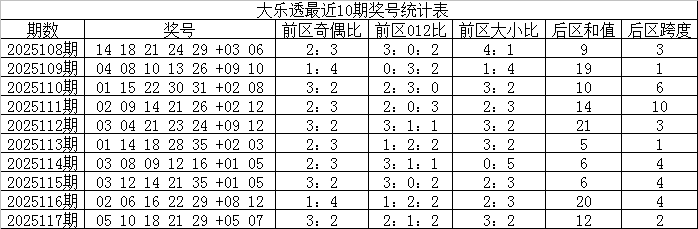 综合分析,大乐透第25118期前区012路比参考2:2:1。