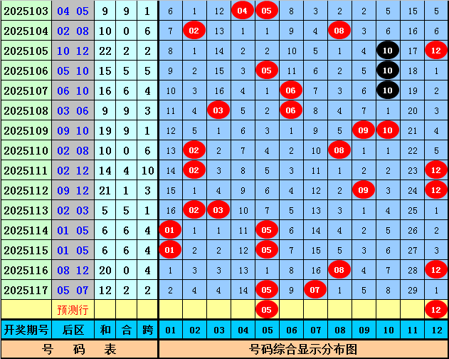 后区判断:后区第118期历史同期奖号大小比总比例为1:16,大号出现较少,本期看好大号回补,注意一大一小,两码参考05、12。
