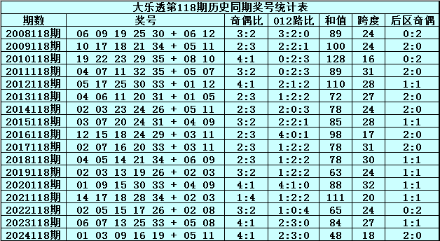 后区分析:在第118期历史同期开奖中,后区奖号一奇一偶出现7次,全奇出现7次,全偶出现3次,今年第118期后区预计出现一奇一偶组合,看好两码01和04。