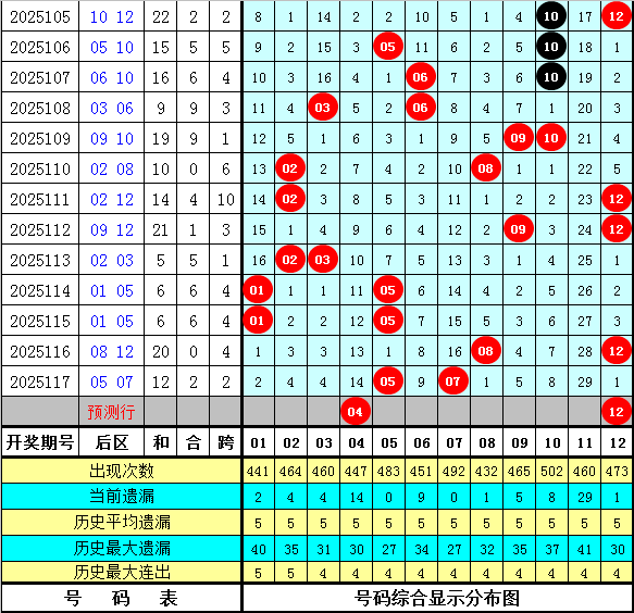 其中,后区012路比5:7:8,奇偶比8:12,大小比11:9,本期一码看好12。