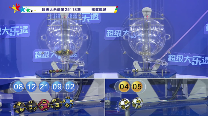 上期开奖:体彩大乐透第2025118期开奖号码为:02 08 09 12 21 + 04 05。