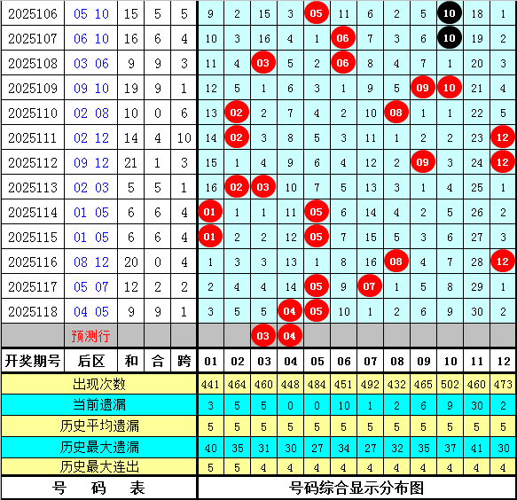 和值跨度:上期和值开出52,对比第2025117期和值下降了31个点位,本期看好和值走小,关注小 号区域和值,预计在85附近。