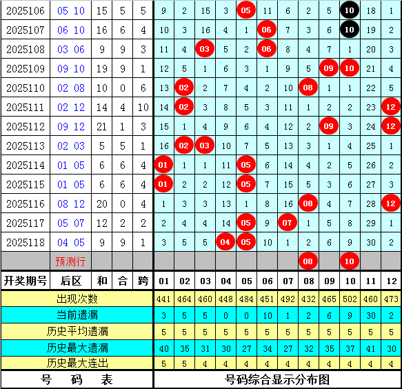 上期回顾:体彩大乐透第2025118期开出号码:02 08 09 12 21 + 04 05,其中前区奖号尾数奇偶比为2:3,大小比为2:3,012路比为1:1:3,大中小比为2:0:3,后区奖号尾数奇偶比为1:1,大小比为1:1。