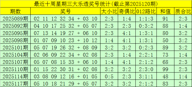 后区分析:最近10周星期三一大一小开出7次,全大开出2次,全小开出1次;一奇一偶开出2次,全奇开出3次,全偶开出5次,本期后区注意两码05+11。