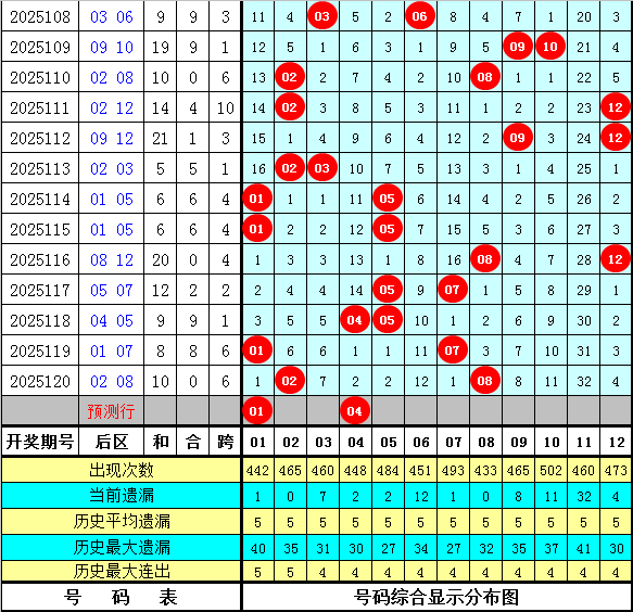 小霸王大乐透第2025121期历史同期前区定位分析