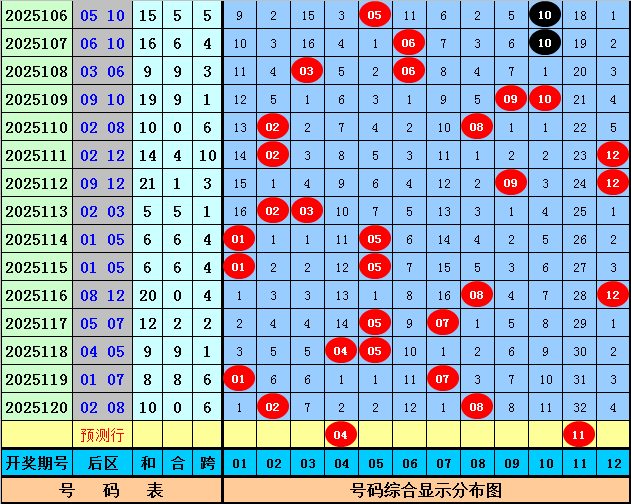 后区分析:上期后区开出号码02和08,在最近15期开奖中,后区奖号奇偶比为14:16,大小比为13:17,本期后区关注一奇一偶组合和一大一小组合,精选两码04和11。