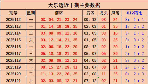 综上所述,本期预计012路比2:2:1