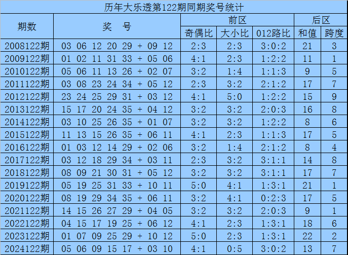 袁军师体彩大乐透第2025122期历史同期奖号分析: