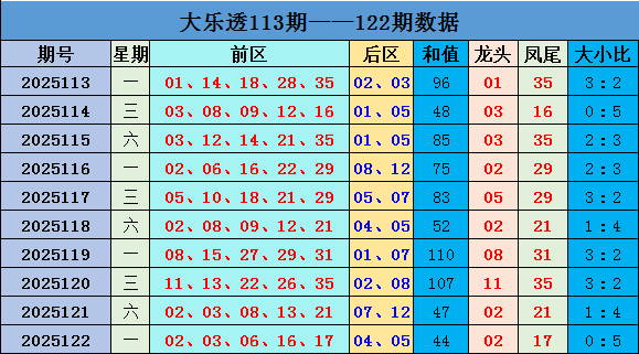 大乐透第2025122期,当期开奖号码为:前区02 03 06 16 17,后区04 05。龙头02,凤尾17,和值44。