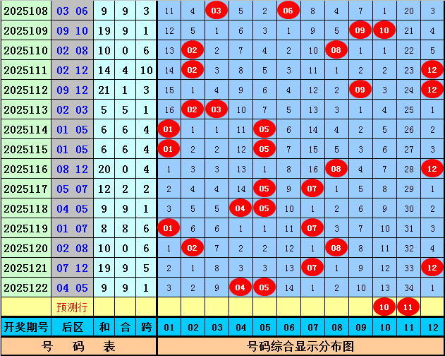 后区分析:在第123期历史同期开奖中,和值大小为8:9,跨度奇偶比为12:5,本期后区注意两码10和11。