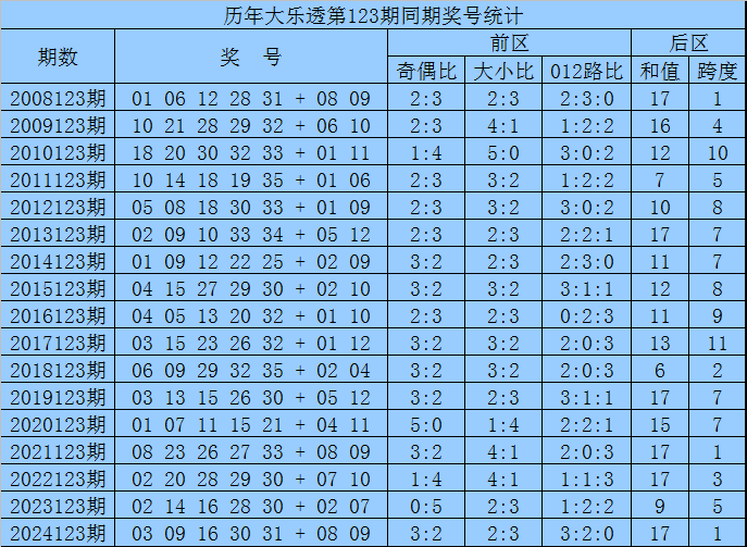 袁军师体彩大乐透第2025123期历史同期奖号分析: