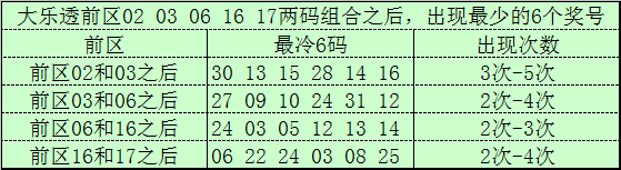 前区冷码统计:大乐透第25122期前区奖号为:02、03、06、16、17,截止第25122期历史上大乐透已经开出了2790期奖号了,在连续两码奖号中:
