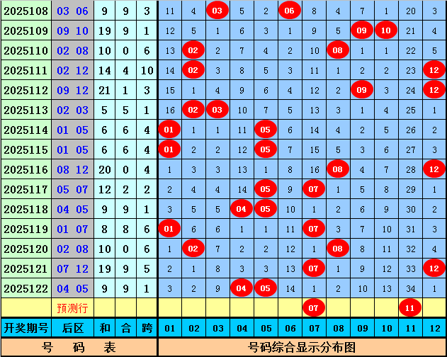 后区奇偶:最近30期后区奖号奇偶比为26:34,偶数号码出现较多,近10期号码奇偶比为12:8,奇数号码较热,本期后区关注全奇组合。