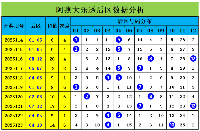 后区上期开出号码04、10,奇偶比为0:2,近十期后区奇偶比为11:9,总体看奇数走势稍热,本期后区要注意奇偶比1:1,五码复式参考:01 06 08 09 12,重点两码推荐:01、08