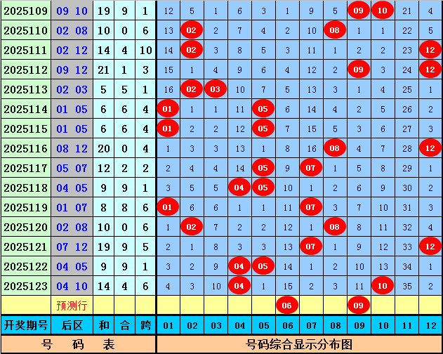 前区和值:最近30期前区和值平均值为84.6,最近10期前区和值平均值为75.2,比中位和值低0.8个点位,上期前区和值为101,对比前期上升57个点位,本期看好和值转向下降,在60-70区间开出。