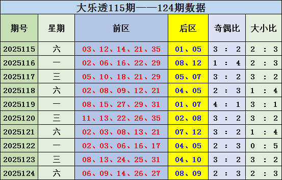 大乐透第2025124期开奖号码:前区06 09 14 26 27,后区08 09。前区奇偶比2:3,大小比2:3。