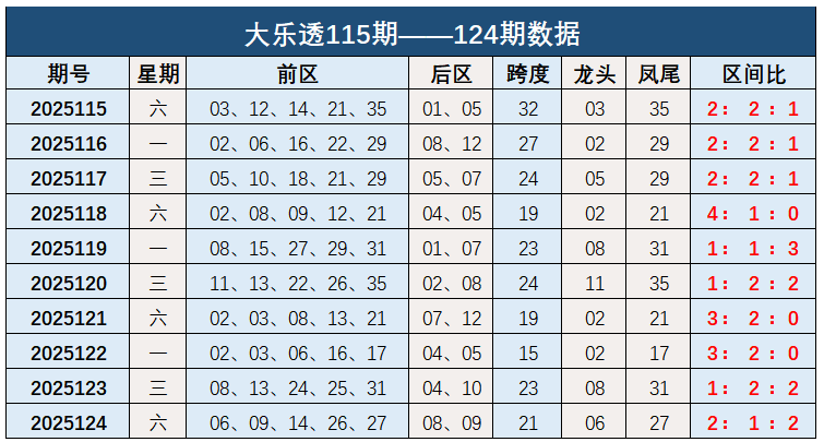 大乐透第2025124期出奖号统计:前区06、09、14、26、27,后区08、09。前区跨度21,龙头06,凤尾27,区间比比2:1:2。