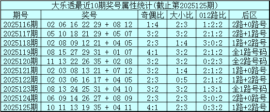 大乐透第2025125期开奖号码:10 11 13 19 35 + 04 11。前区奖号大小比为2:3,奇偶比为4:1,012路比为0:3:2,后区为1路+2路号。