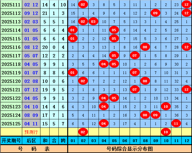 后区分析:上期后区开出1路+2路号04和11,最近30期后区奖号012路比为16:22:22,最近10期后区奖号012路比为3:9:8,本期后区注意号码02、06、07、10、12,单挑两码组合02、10。
