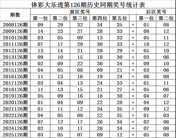 王守礼体彩大乐透第2025126期历史同期定位升重降号码分析: