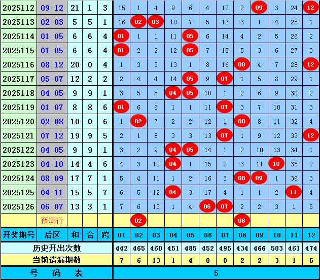 后区分析:上期后区开出奖号06和07,在最近50期开奖中,后区奖号012路落号比为27:36:37,前10期后区012路落号比为3:10:7,本期后区关注号码02、03、05、08、11,两码参考02、08。