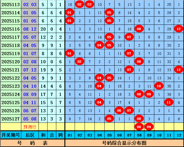 前区0路号码分析:上期0路号码走势非常冷,全部轮空;最近20期0路奖号开出36个,略高于理论开出个数;前10期0路奖号出现16个,与理论出号基本相当;目前0路号码走冷1期,本期重点关注0路号码回补转热,关注号码06、12、15、21、24。
