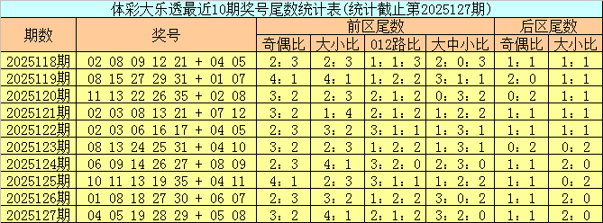 邵老爷大乐透第2025128期开奖号码尾数定位分析: